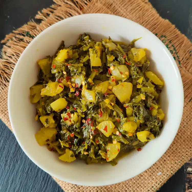 Mooli ki bhujiya is my all time favourite and this mooli palak i learned from my mother in law. there is also one community special delicious curry- sakra saag made using spinach, radish potato etc .